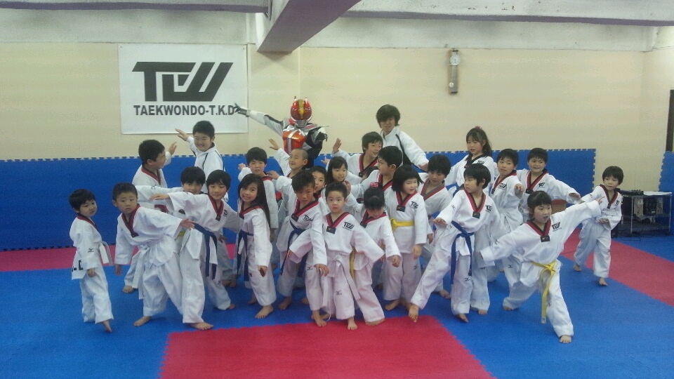 TKDでも先週の日曜日に合同練習会を行い、練習後には仮面ライダーが来てくれました。