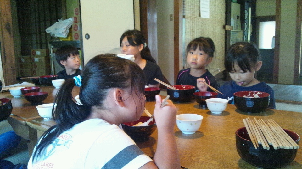 1時間程走ったあとは宿舎に戻って朝食です。
